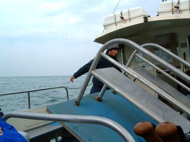 | ... where we stagger up onto the launch ramp of the lifeboat ... | ||