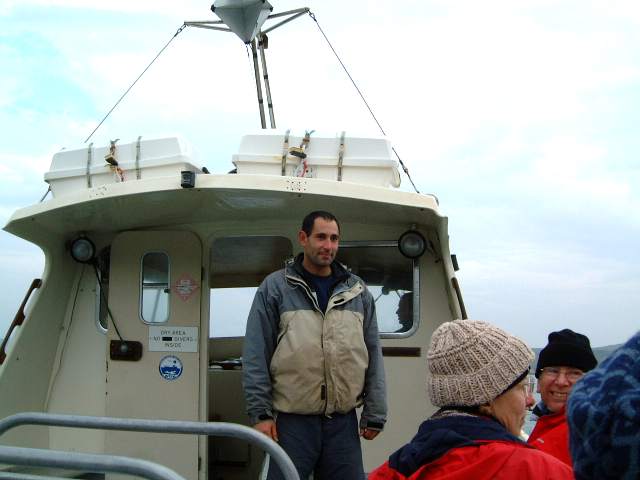 | Here Kathy and Maurice wave us off on a round the island trip of one and a half hours. | ||