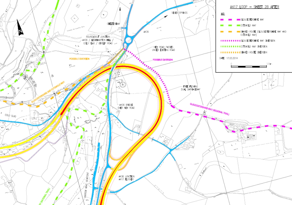 | URGENT - If you wish to comment on and perhaps support these proposals, you are urged to go to http://a417missinglink.co.uk/ by the end of the month. It is vital for us as Ramblers to mention the importance of dealing with walkers' safe crossing points. The present dangerous situation cannot be allowed to continue. The new crossing points will be on the lesser roads between Birdlip and Seven Springs, not the main loop of the dual carriageway from Cirencester to Brockworth. My personal preference would be to have pedestrian controlled lights as occurs on each end of the A419 Ebley bypass. If you agree, please mention this in your comments. You will note that it is proposed to demolish the Air Balloon pub. If you are concerned about this, you could enquire if the loop could be moved a little further north to avoid this. | |