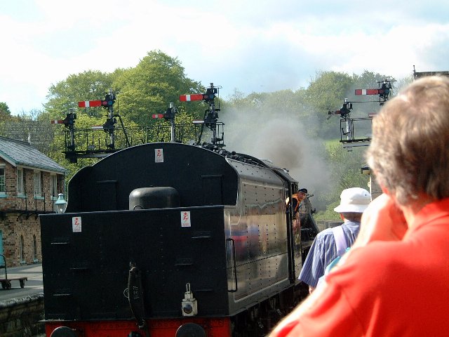 | The locomotive pulls our train into the station, cameras clicking everywhere. | ||