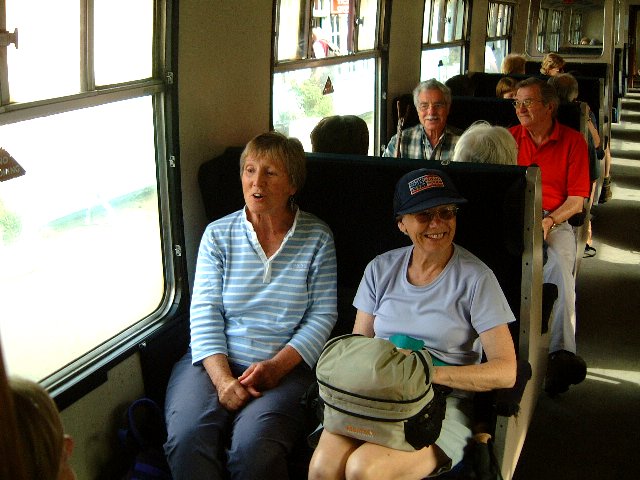 | Walkers are all aboard for their ride UP the valley, our leader was not born yesterday! | ||
