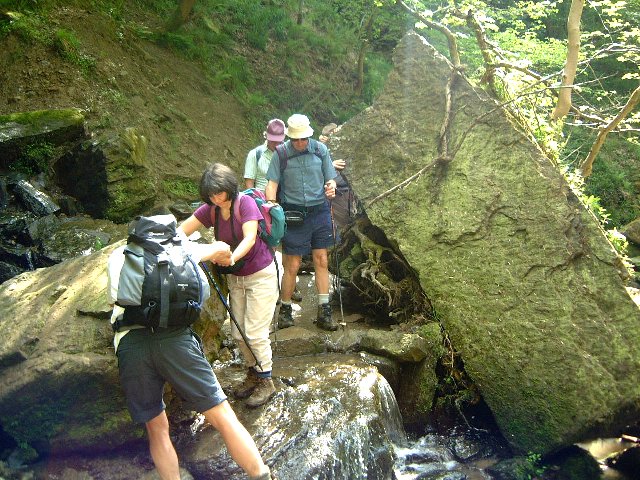 | ... a rocky river gorge, where it is a challenge for everyone to find a safe route. | ||