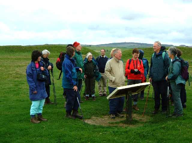 | Our main objective was Maiden Castle, the largest Iron Age hillfort in Europe. Here is our first view of the towering earthworks. | ||