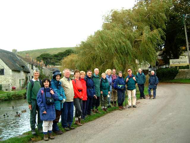 | We line up for the Group photo by the pond in Sutton Poyntz. | |||