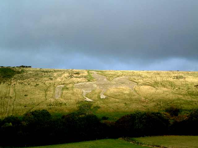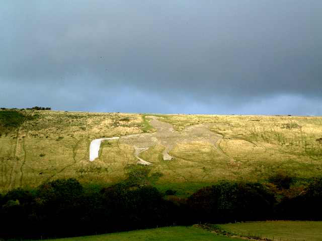 | We walk along the valley under the white horse of George III on horseback. We notice how dark the chalk has become, and wonder if we can do any rennovation! | |||