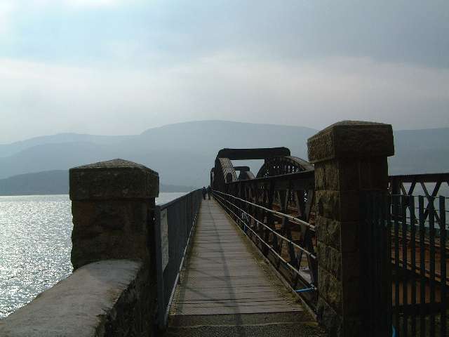 | The half mile long bridge is shared by the railway and pedestrians, cycles and motor cycles!. | ||