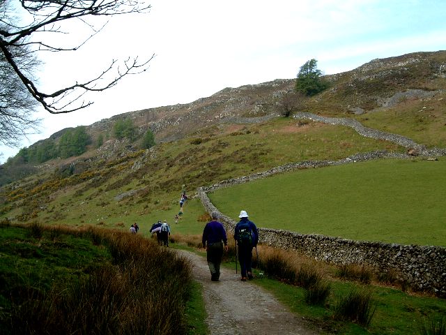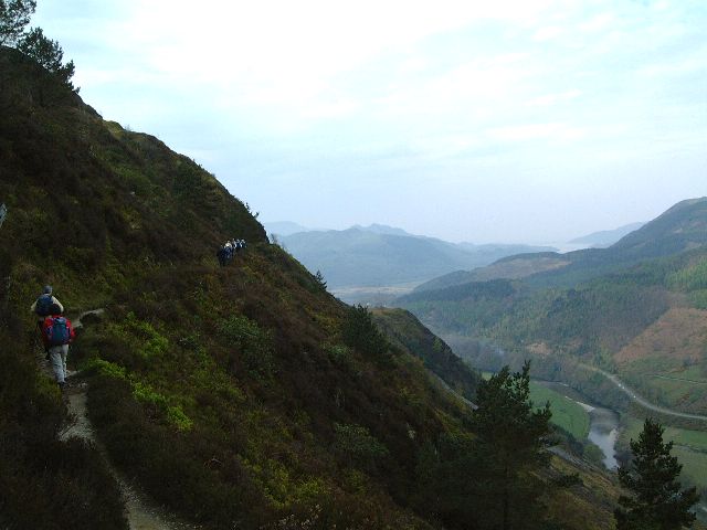 | We catch a glimpse of Llyn Cynwch before we start to climb, and will return along its shore. | ||