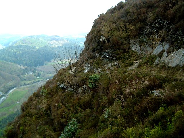 | Sheer below is the vale of the Afon Mawddach. | ||