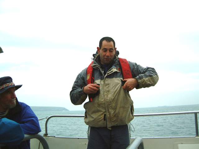 | We are shown how to put on our life jackets - please let's hope we don't need them! | ||