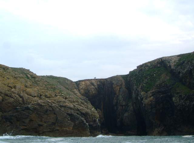 | Just to give you some idea of the height of the cliffs, two walkers cross the skyline. | ||