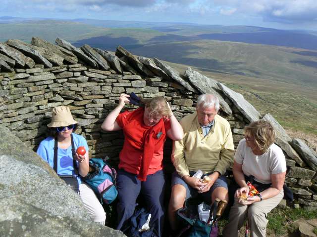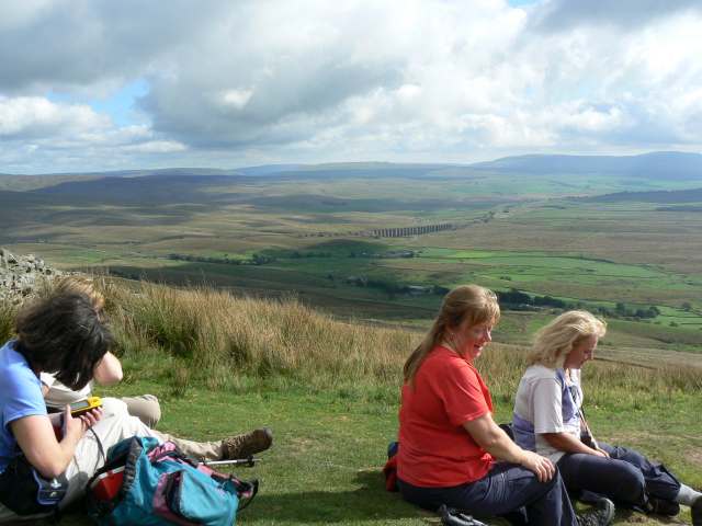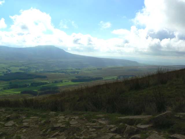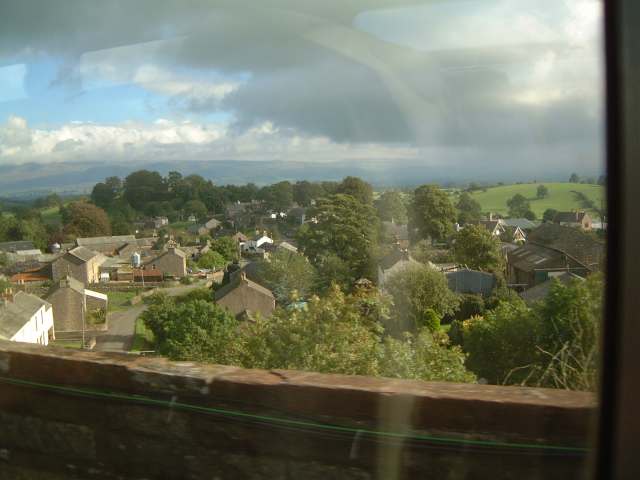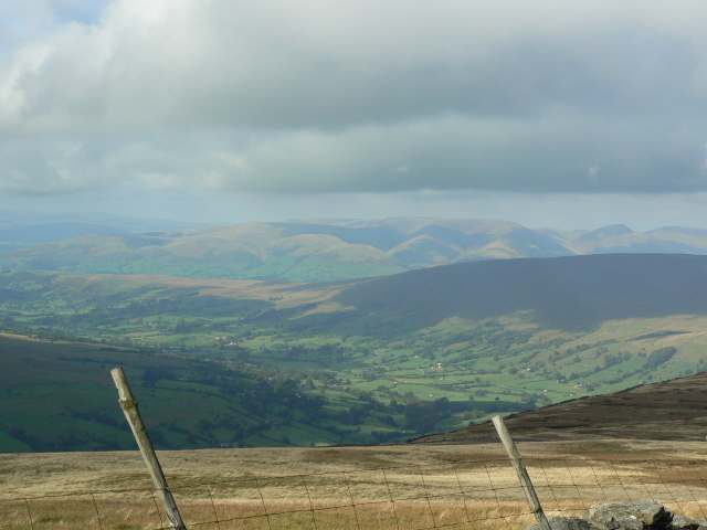 cloud, but we can make out the "Sleeping Elephants" as Wainright called the Howgill Fells. We receive no rain in Yorkshire! . |
