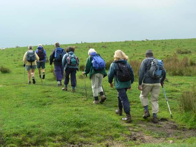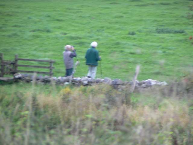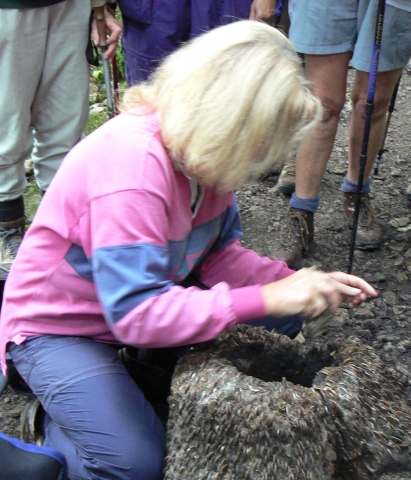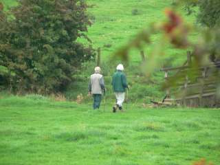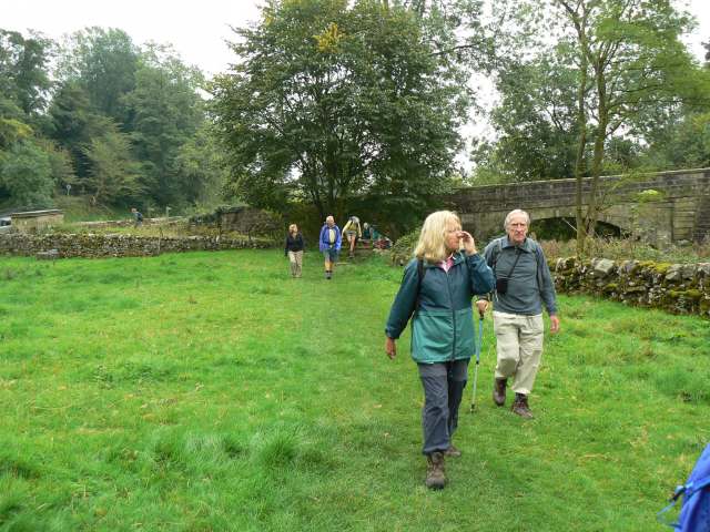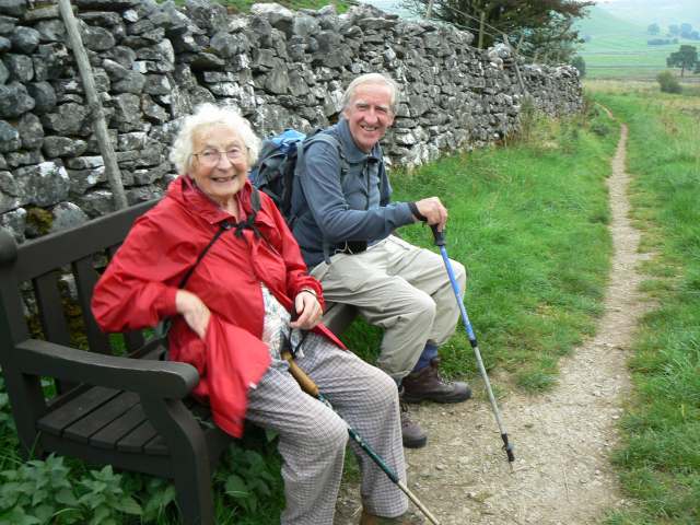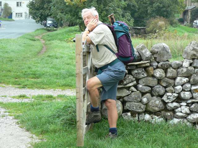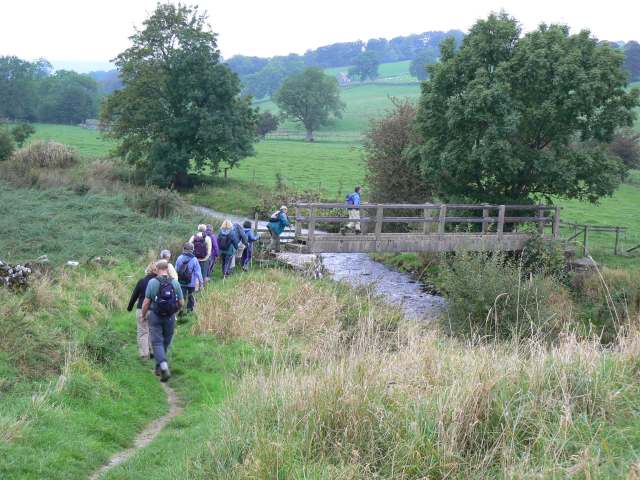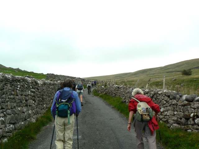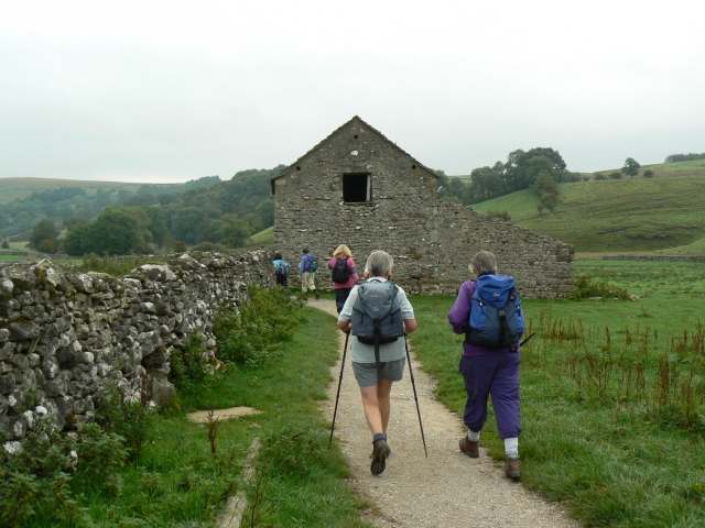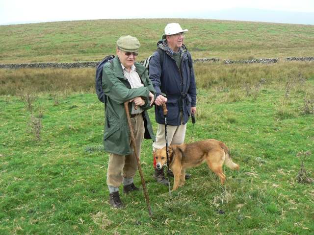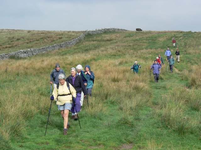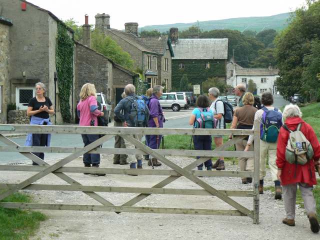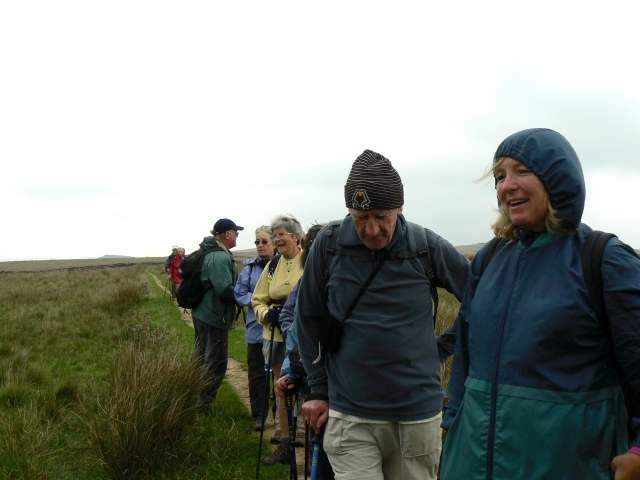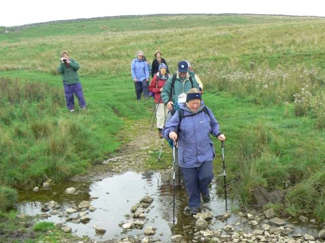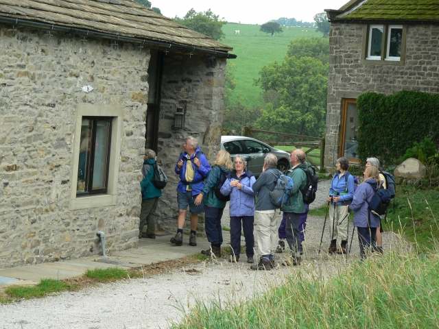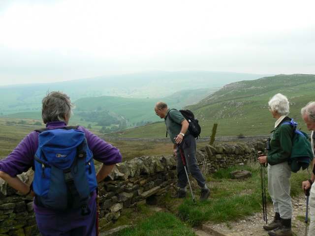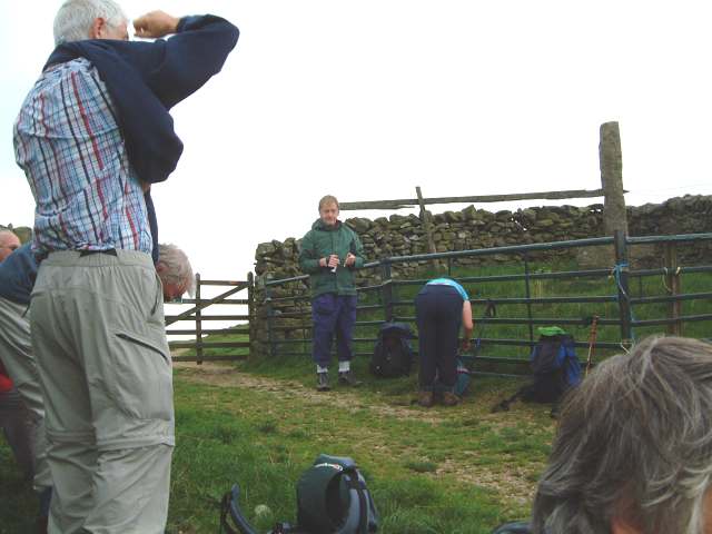 | Wednesday's walk led upwards between stone walls to Weets Cross and Calton Moor. A fine raised path had been constructed to keep the boots clear of marshy ground. A highlight of the day was the visit to a splendid farm shop and cafe at Airton. | ||