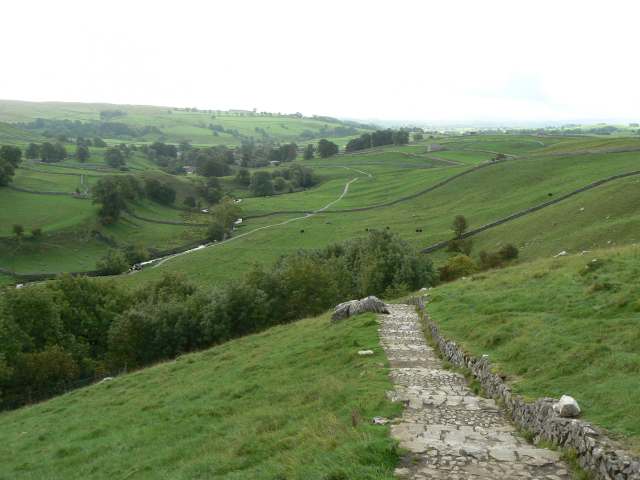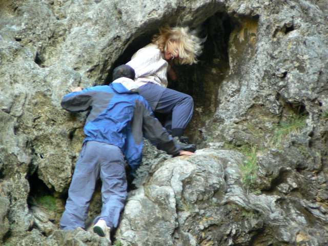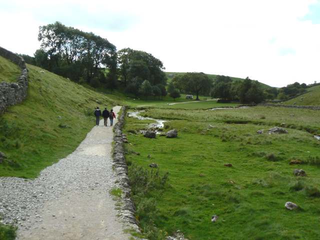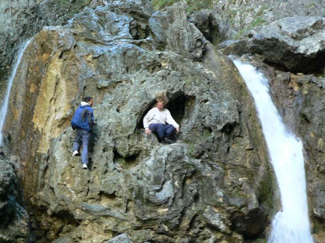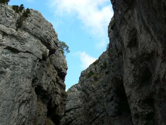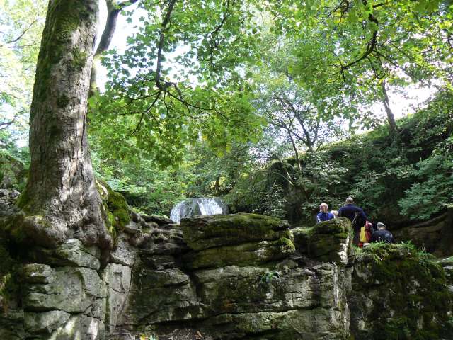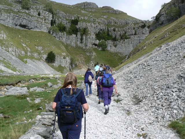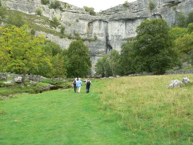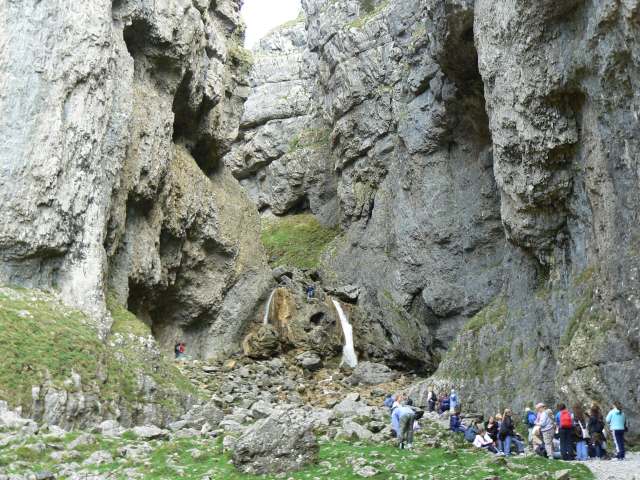 | On the last day, a morning walk was taken to the spectacular Gordale Scar, with the return route via Janet's Foss, a waterfall which tumbles into a pool set in a wooded valley. | ||