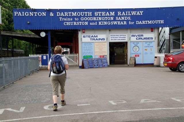 we have driven to Paignton Station to catch a steam train to Kingswear . |
