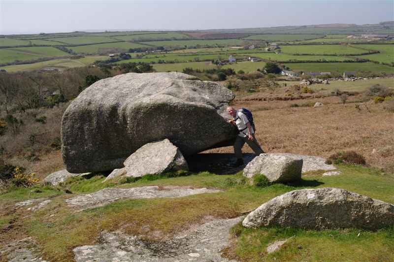| John trying to roll a large rock down the hill - think he might have overestimated his strength | ||