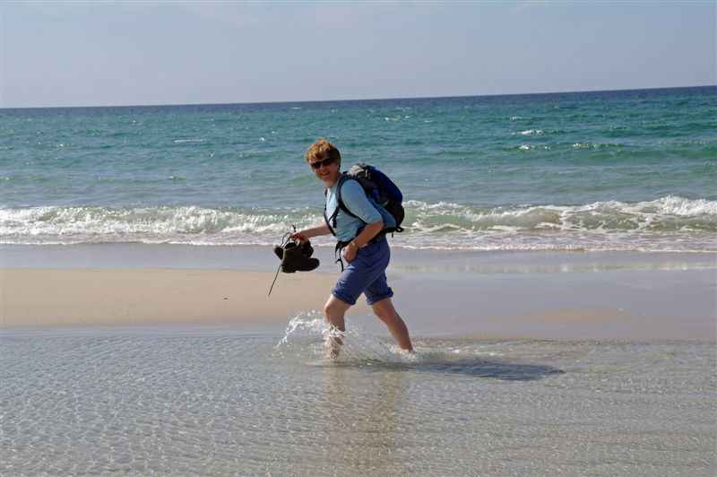| Making our way along the beach | ||