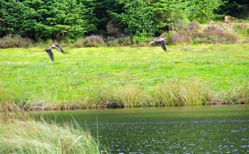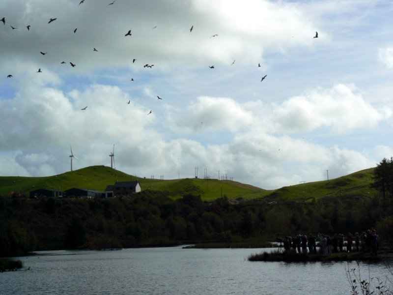 Kite feeding which takes place by a lake . |