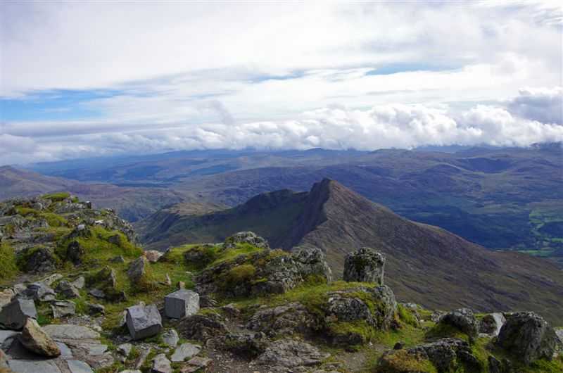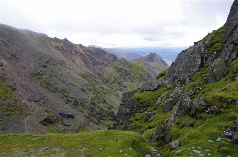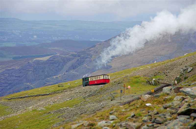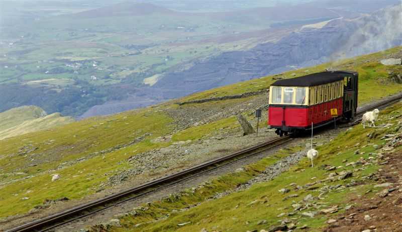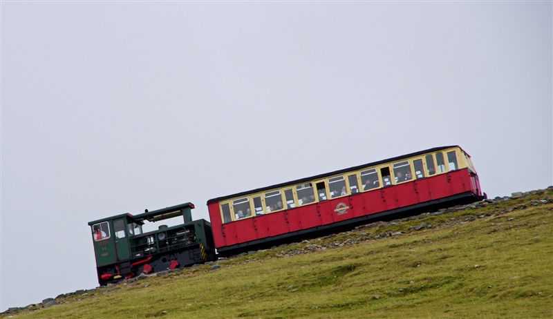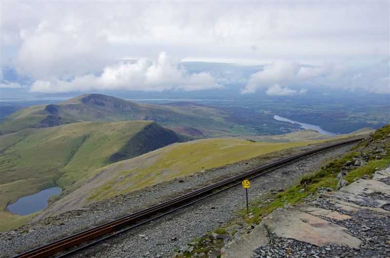 the Llanberis Path with its railway giving an easier way to the summit . |