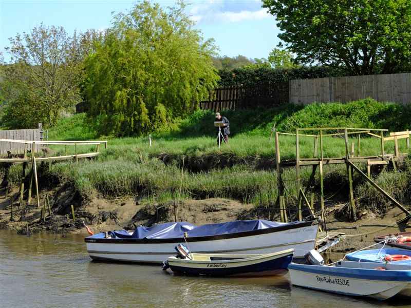 | As we sit having tea overlooking the river an artist paints us from the other bank | |