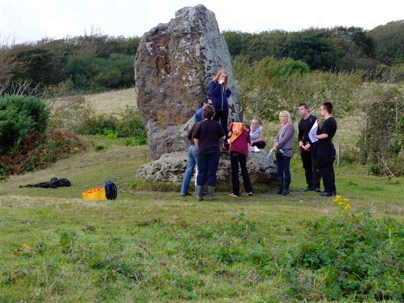 | Encountering a group of students on a field trip at the Long Stone near Mottistone | |