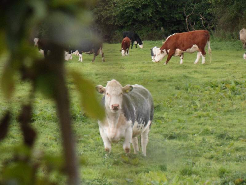 | Unusual colouring of this cow, spotted on our way to lunch in Little Wenlock churchyard | |