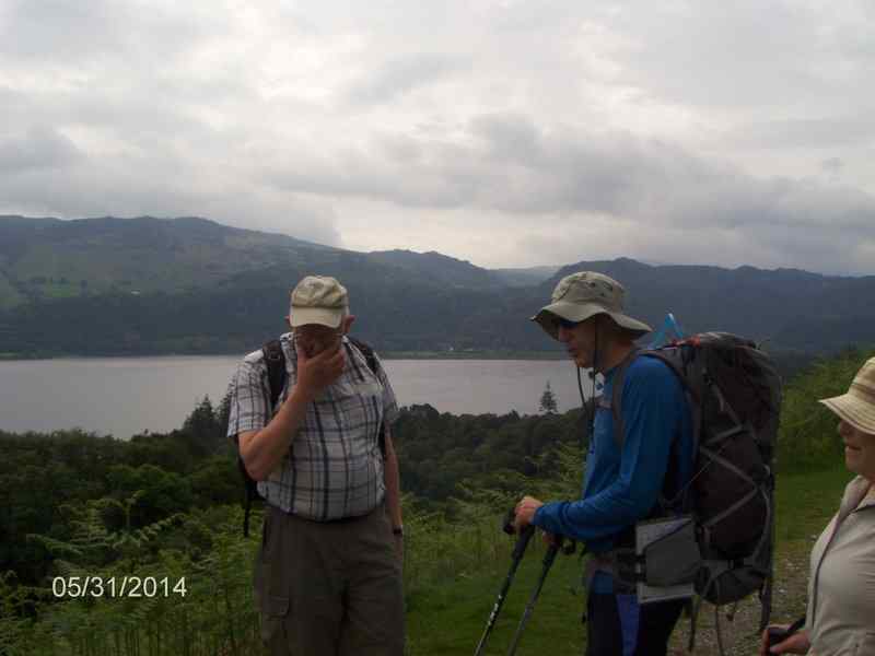 | Colin leads three walkers on the easier walk by Derwentwater | |