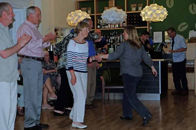 | Sue has bravely volunteered to demonstrate the first dance with Jan | |