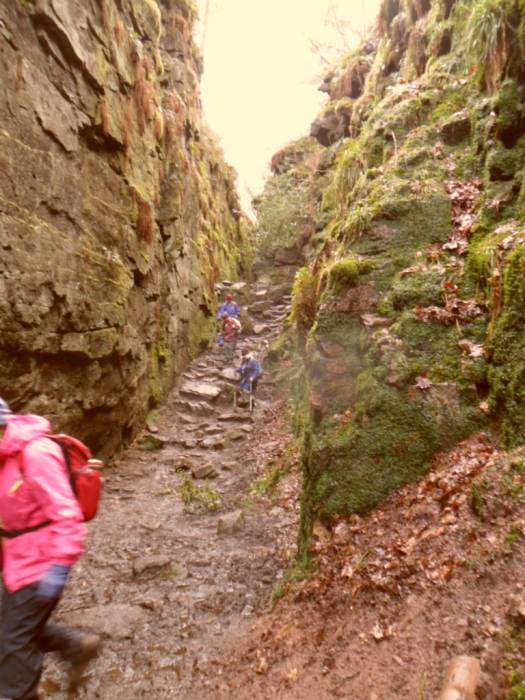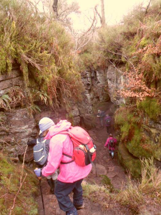 | We descend into the chasm of Lud's Church, said to be used as a secret place of worship by the Lollards, followers of John Wycliffe | |