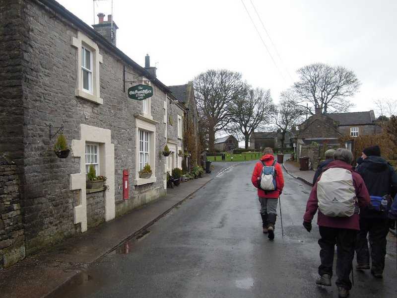| A 1907 waymark, predating the Ramblers Association by 28 years! We buy some cheese and have a cup of tea to avoid the shower. |