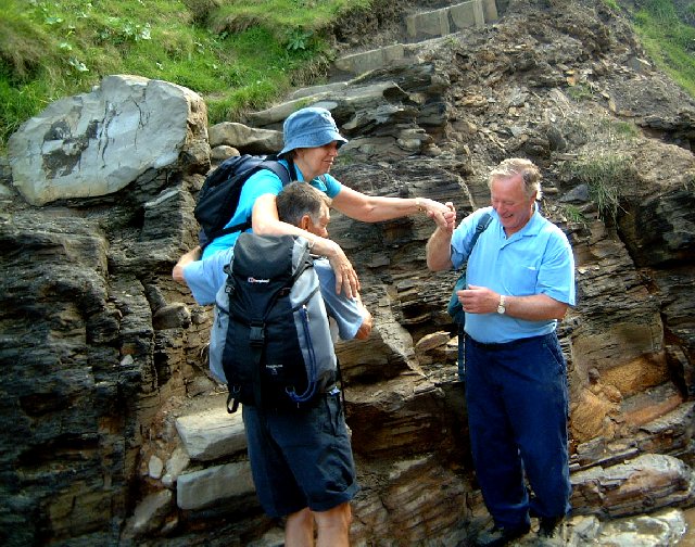 | Time for a well-deserved ice-cream, but is this such a good idea, as we now have a very steep climb back to the cliff top? | ||