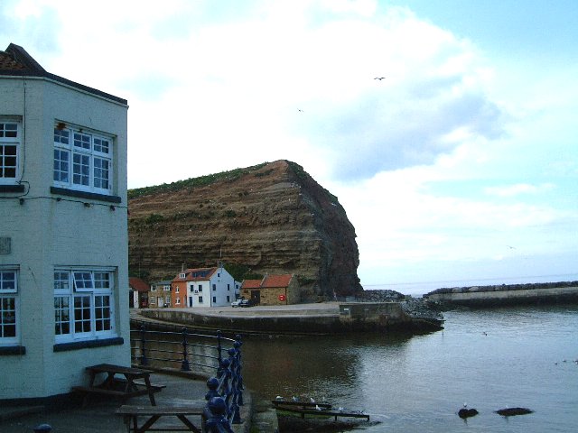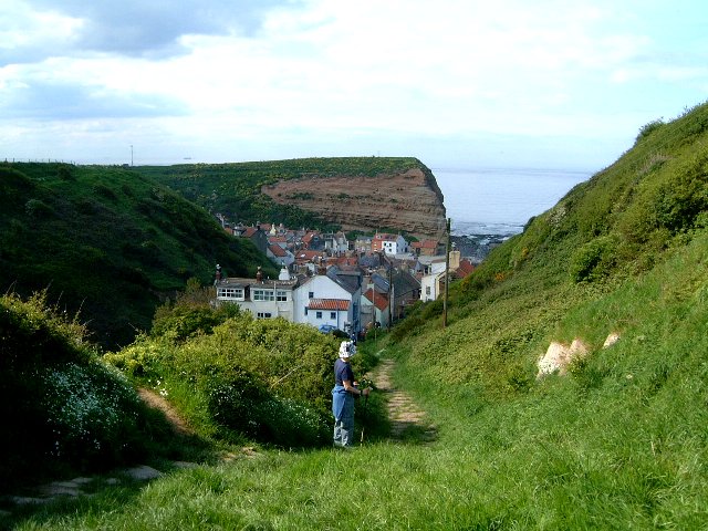 | Eventually we reach Staithes, nestling in a break in the coastline. | ||