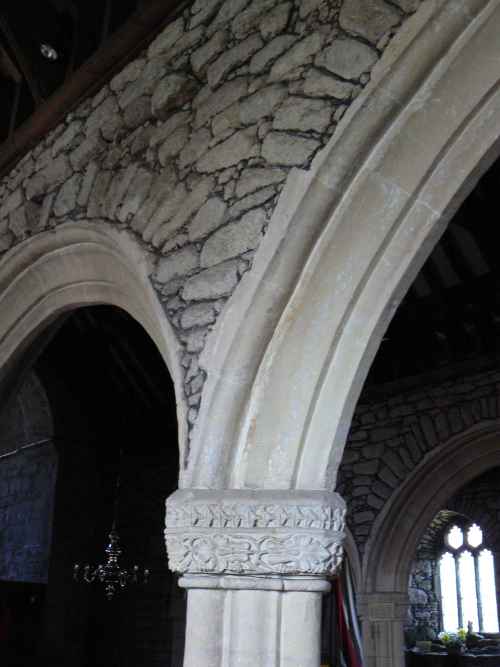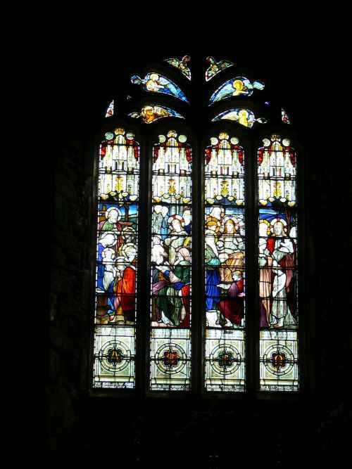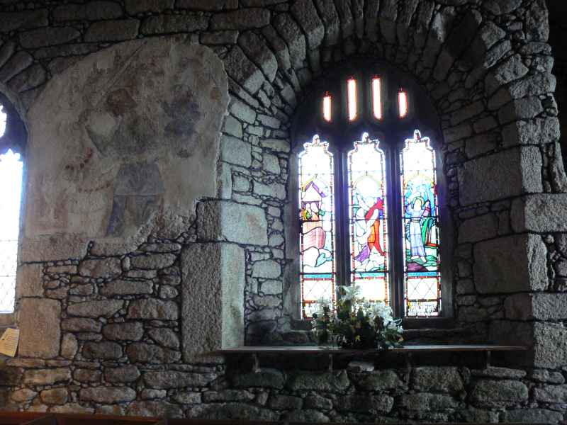 | .We get back on the bus to St Just, where we look inside the church at paintings and stained glass | ||