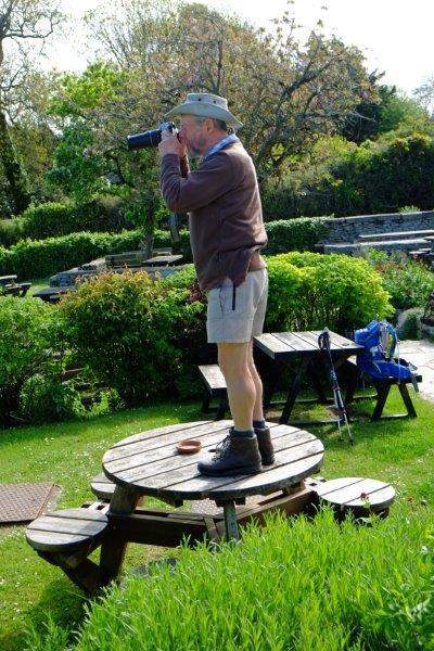 | Mike takes a photo of the group - do they realise how sheer the cliff is? ** | |