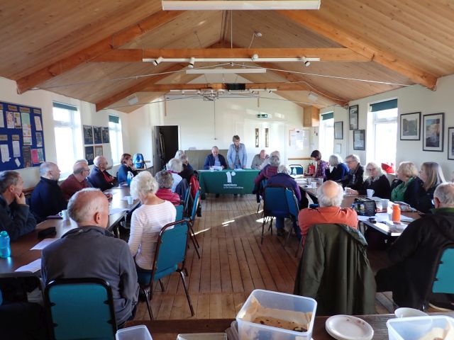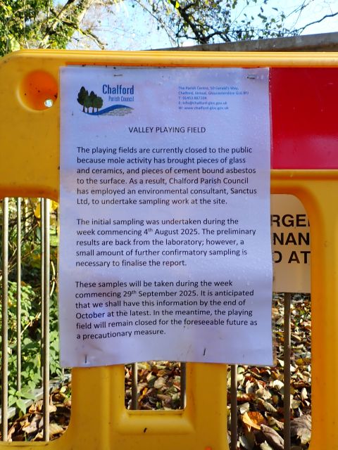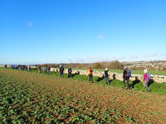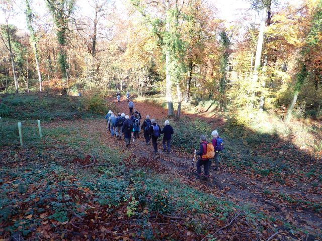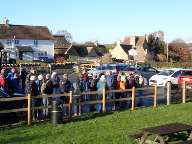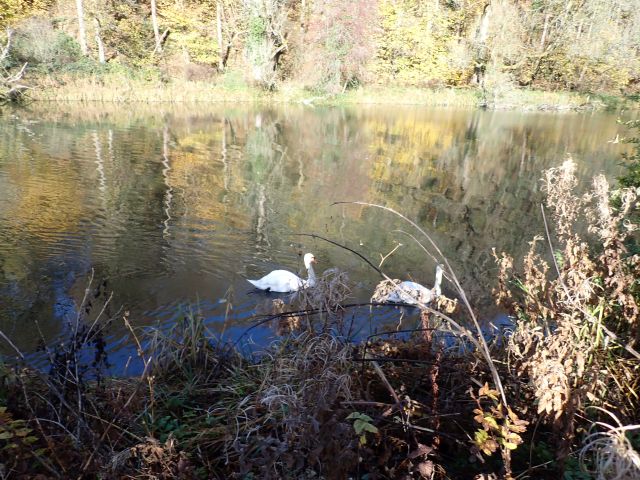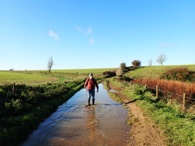 AGM walk - Saturday 8 November 2025 Previous Next All A very good turnout for our Pre-AGM walk But it is a beautiful day in Frampton Mansell Sally leads us on the track towards Cowcombe Hill Where Mike demonstrates how much rain came down last night Safely over Cowcombe Hill, we stay on the top in a line, Tina back marking Then it’s down through the woods To the canal path Where our planned coffee stop location is ruined by moles playing with asbestos Past the otter lake, reflecting well Then it’s back to the village hall for lunch, cakes and a chat Before our AGM Photos by Keith, captions by Sally and uploaded by Olivia