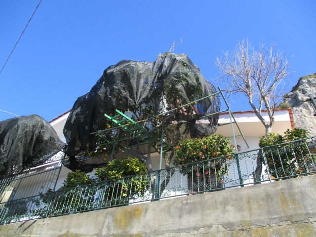 Lemon trees covered in nets, everywhere on our holiday