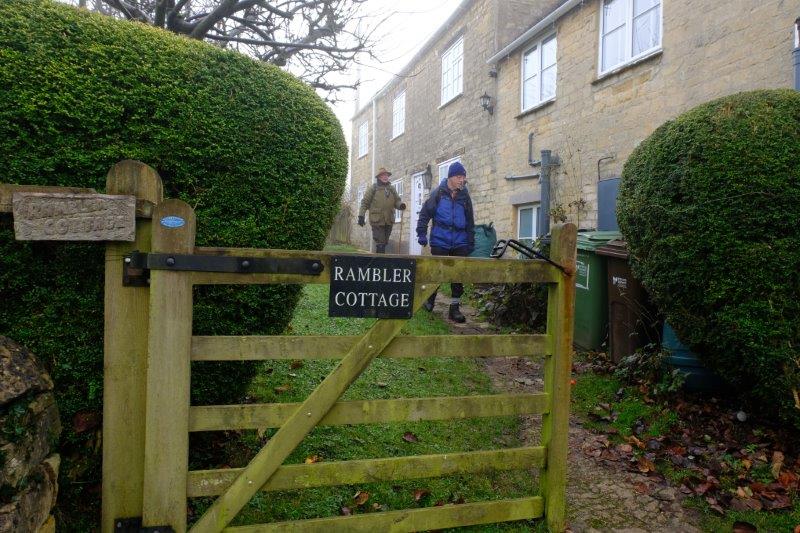 Amberley leisurely walk - Monday 30 December 2019 Previous Next All It's a misty murky day at Amberley War Memorial with Ann in full flow Our path takes us along a narrow track Through the garden of Rambler Cottage And down into the road Along to the Bear Over the Common to the Dog Tree Where we pause to admire the decorations and read the various messages Even Brian gets the Christmas spirit with a decoration on top of his head The sun is breaking out in the valley over Kingscourt Selsley Ebley and Cainscross Now time for coffee under the wall round Rodborough Fort Rodborough Church in the valley As we circle the Fort One more look into the valley Crossing Mount Vernon and continuing round the Common Pausing for a look Across the beginning of the Chalford Valley It's that man with another ice cream As we stop at Winstones Before carrying on along the road Past mossy walls and fallen leaves Then on to the Common slogging uphill Heading into the mist, back to the cars. And a happy new year to all my readers Photos and captions by Richard, uploaded by Sally
