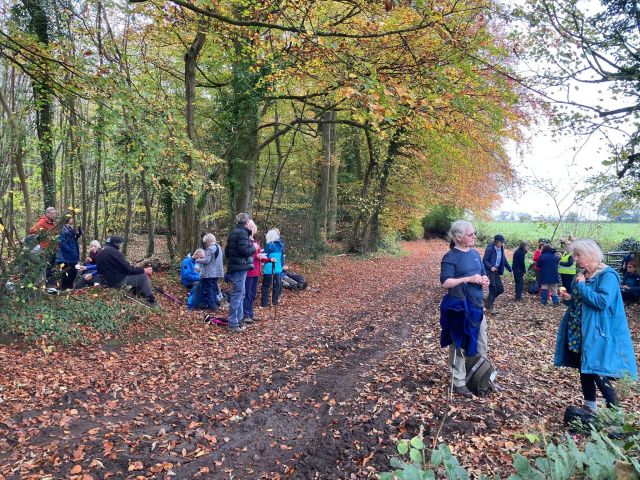 Avening - Monday 4 November 2024 Previous Next All It must be Avening! I bet Olivia is regretting taking over Lenneke’s walk as 32 walkers arrive Really pretty sheep Looking back over West End We stop in the woods For coffee * Interesting! Frisky horses wound up by the shooting in the woods I really liked this view as we head back to Avening Photos by Sally and Loren*, captions by Sally and uploaded by Olivia