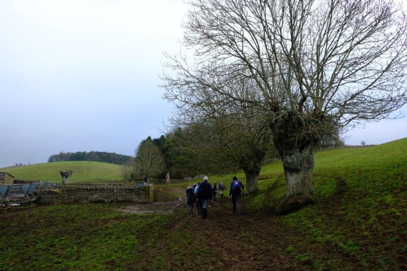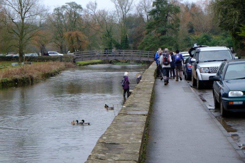 Bibury walk - Wednesday 20 December 2017 Previous Next Bibury. Arlington Row across the field Colin leads us out through the village. Large houses, large camper vans and twinkling lights in the bushes Out into the fields Snow still melting Wonder if they serve custard More signs of snow As we enter Ablington Still quite a wintery scene Crossing the Coln. View upstream And downstream On through the village More country cottages Through fields as we follow along the Coln Pockets of snow everywhere Now on a grassy track Always a bit of flooding here Back Marker back marking Tree has seen better days The view on up the valley Now looking across to Winsom As we start to circle the village In the days before dishwashers were invented........ Looking down on Coln Rogers As we circle back to Winsom Over the Coln again A rather splendid Poplar tree has Graham enthralled Hares having a set to Very old lions More views of Winsom Lichen covered trees A short sharp climb Then back up the valley Getting a bit muddy As we follow a long track OK if you are wearing wellies Heading towards an isolated house With swans(?) on the pond Arriving back in Bibury And along the Coln yet again The bridge to Arlington Row There it is again Jill standing in the river to clean her boots Janet follows suit Back across the bridge to the cars and mince pies Photos and captions by Richard, processed and uploaded by Sally