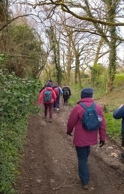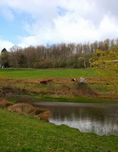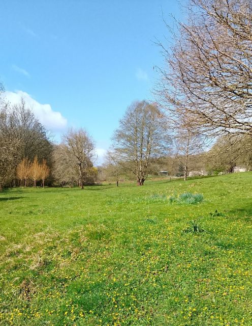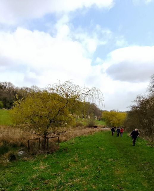 Bisley - Monday 30 March 2026 Previous Next All Bluebells at the Giant's Stone - Not sure whether these are English Bluebells, Spanish Bluebells or hybridised? View to Througham Slad and Monsell Wood Celandines at Lower Battlescombe Peaceful cattle at the Battlescombe Ponds, sadly the ducks flew away when they saw the camera. Thirsty Ramblers leaving Upper Battlescombe to have a break at Water Point. Pausing at Rectory Farm. Going down Joiner's Lane heading for Bisley. Back in Bisley a magnificent magnolia. A walk through Bisley churchyard with its attractive lychgate. Photos and captions by Lorraine, uploaded by Sally