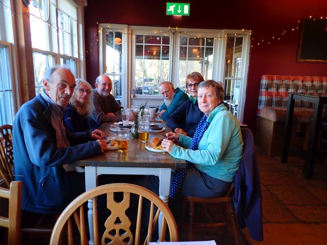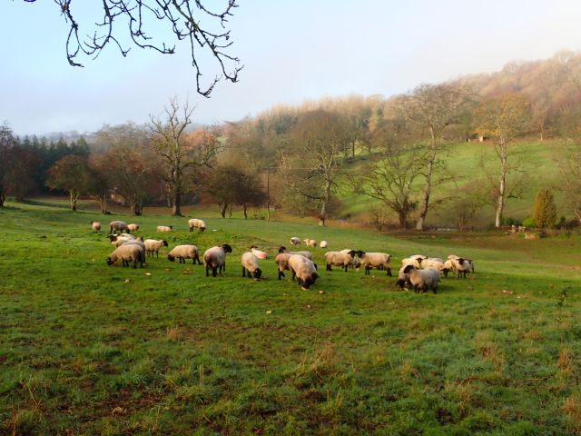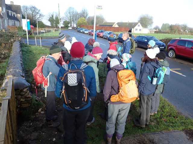 Bisley - Wednesday 3 December 2025 Previous Next All We drive through fog to get here but in Bisley it’s clear We leave Bisley behind It’s an idyllic scene With pretty sheep in the winter sun Hilary leads us round a bend And we come into Eastcombe with an interesting pair of “Model cottages” Coffee stop on the green at Eastcombe We pass lots of fields of cabbage-type plants Then some of us go back to the Lamb after the walk Photos by Keith, captions by Sally and uploaded by Olivia