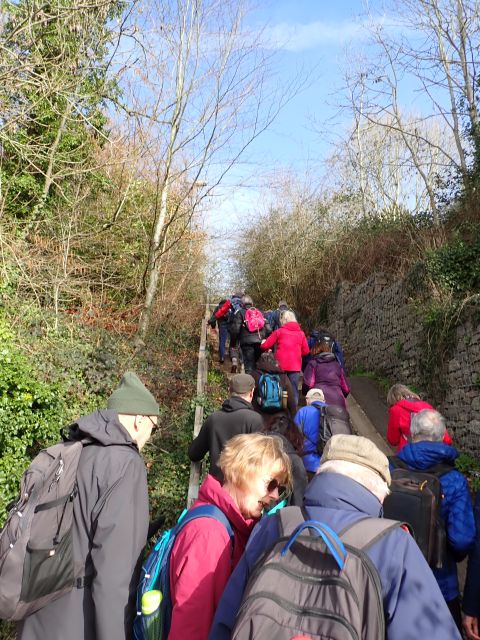 Cainscross - Monday 23 February 2026 Previous Next All Cainscross car park for Mary's walk Crossing the canal in the sunshine And heading towards Sainsbury's Up the steps at Dudbridge And along the old railway line A brief stop Then at the lock gates at Wallbridge Where the tow path continues Photos by Keith, captions and uploading by Sally