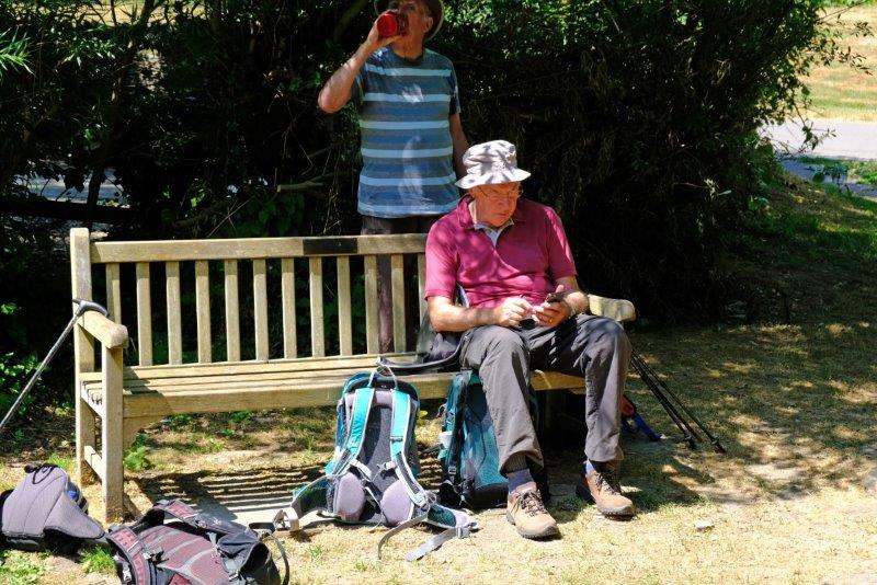 Eastleach walk - Wednesday 11 July 2018 Previous Next The start of our walk with the pub looking down Our route takes us past alms houses Over the River Leach Past the Church A short road walk Which we eventually leave Dry grass He's lost his mum Continuing up the valley Before entering a wooded area Following the river - but where is the water? Coffee break Fields of blue chickory Colourful ringlets Back into Eastleach Lunch by the river Our aquatic members paddle Looks cold Fish in there somewhere Butterflies like mud Meanwhile Ron and John get ready to leave us The rest of us following the river Horses seeking shade Into Southrop Past the pub Lavender crop in the garden Still on the river Till we meet Mr Swan with his cygnets He doesn't seem inclined to let us past Until our brave photographer intervenes and the babies head for the water We continue across fields of barley Back into Eastleach A quick look in the church Back outside Over the river To the cars Photos and captions by Richard, uploaded by Sally