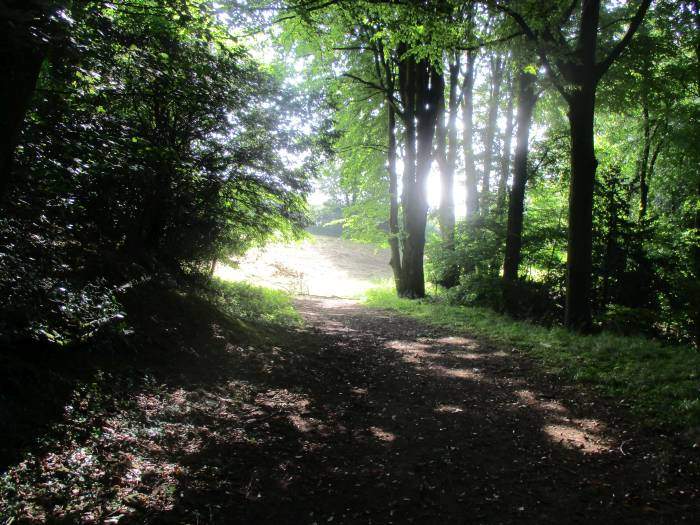 Fostons Ash walk - Wednesday 21 September 2016 Previous Next A good crowd for Brian's walk from Fostons Ash We set off round a field Sheelagh back marking Interesting bracken and nettles Coffee stop Looking over Witcombe Reservoir We gather together Colourful shrubs in Cranham And the Union Jack on the Village Hall roof We walk up the quiet road Past a lake The sun shining at the end of the wood On Sheepscombe Common the National Trust Belted Galloways are hard at work While we eat our lunch, or, in Ray's case, pretend to sleep One of the Galloways is interested in us But the others, including a cute calf, move off Choosing the company of our illustrious leaders, who have distanced themselves from us A few flowers still around A bit of a flog up through Workman's Wood These logs make a good boot tying spot as we near the pub. Photos, captions, processing and uploading by Sally