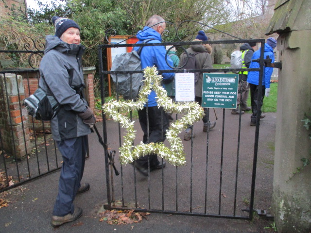 Gloucester Docks walk - Saturday 15 December 2018 Previous Next A dreary day for John's walk Along the river Some decorations still lit Cheerful on a day like today Into Hempsted Where the church has a star on the gate Lady's Well Its entrance barred Along the bank Methane-capturing device On the road to the tip Llanthony Secunda Priory It's been restored since we did this walk last winter Skaters on the ice rink After a short time in the Quays, we return where John poses as a "relative" of Einstein Past some boats A playground for this estate - note artificial grass And we're back to Rea Bridge for port and mince pies. Photos, captions and uploading by Sally