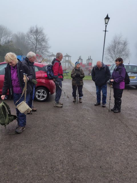 Hawkesbury Upton - Monday 9 March 2026 Previous Next All Just a few of us today, we're expecting fantastic views !!!! Somerset Monument gradually appears in the fog Clearing a bit now. Toothwort about a month early, thank you Sue C for the identification. Primroses And daffodils Ray has arranged facilities for our coffee stop Back past Hawkesbury Upton post office An optimistic post box topper Photos and captions by Ann, uploaded by Sally