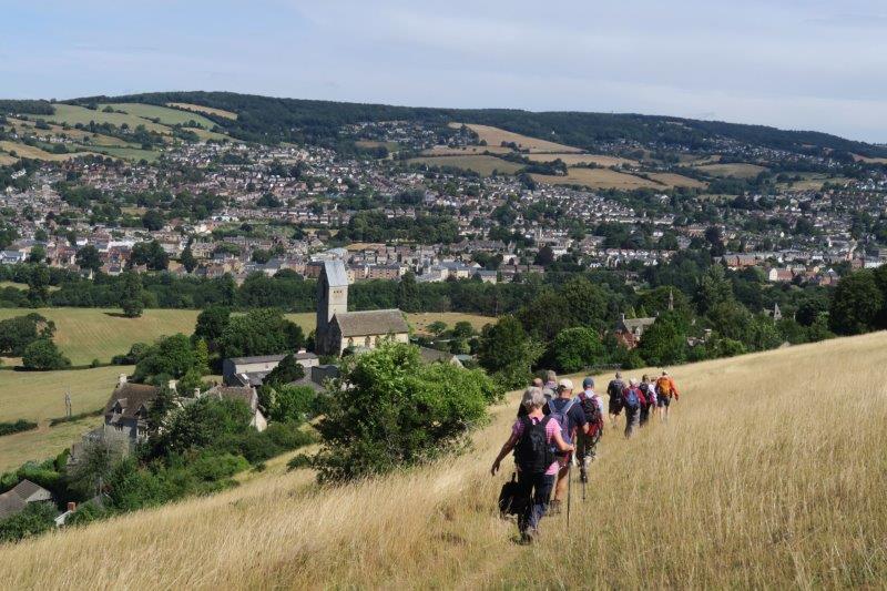 King Stanley walk - Saturday 28 July 2018 Previous Next Before Alex kicks off, Sally tells us about Denys's son who is doing a charity swim We set off across fields on the Cotswold Way Round a field of maize Pausing at the point where the two arms of the Cotswold Way meet then taking the Selsley path View over to Doverow and Standish Woods And back to the Stanleys As we head up to the top Views over the Severn And down into the valley Heading towards Selsley Church The back markers coming down the hill Waiting at the bottom Continuing on the Cotswold Way Towards the by-pass Then over to Ebley Mill Across the canal To Victory Park for coffee Ready to go again Through Cashes Green And up to Bread Street and Ruscombe Then downhill again And back up through Whiteshill Views down the valley to Frocester Hill and Cam Long Down Before our lunch stop and a chance to buy coffee at the village store Off again and round the pond in the valley Olivia demonstrates the fact that she can get through a narrow stile While Alex picks blackberries We approach Randwick across a cricket pitch Heading down towards Randwick School We might make some friends here Thought skylarks were an endangered species Through the church yard And up a steep hill into Randwick Woods A bit of a play area Out of the woods and looking down into the murky valley Stonehouse immediately below A queue forms for a slab stile And we make our way down to Far Westrip Farm A good crop of youngsters Views across to Kingscourt and Rodborough Common. Then through the middle of a field of maize And over the top of Doverow to the vineyard On the Cotswold Way under the Wycliffe College bridge Down to the canal Still on the Cotswold Way Towards Kings Stanley Waiting to greet us As we head into the village Photos and captions by Richard, uploaded by Sally