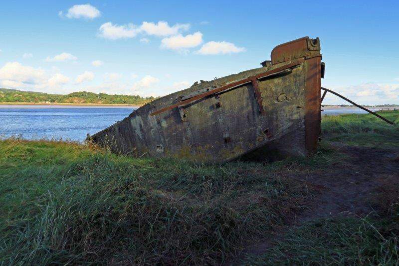Lammastide walk - Saturday 15 October 2016 Previous Next This look means business. Ron is ready to go - with a little help from Ros A recently cultivated fields starts our walk Then a field ready for ploughing A train rumbles by across the river As we head toward Purton May Hill in the distance Past Purton Church And over the Canal A pause as we head along the tow path A crested grebe And a garden decorated with gnomes And other animals Says it all On the banks of the Severn Now at the boats' graveyard Not yet ready for burial Long deceased This one's up a bit higher Even wooden wrecks A herd of cattle across the river We take a coffee stop Now approaching the docks A plaque commemorating the old Vindicatrix A faded Scarlet Lady Now a monument to the Vindicatrix This plaque is of interest to Helen The start of the Canal As we circle the Docks Then head back across fields to the start of our walk Photos and captions by Richard, processed and uploaded by Sally