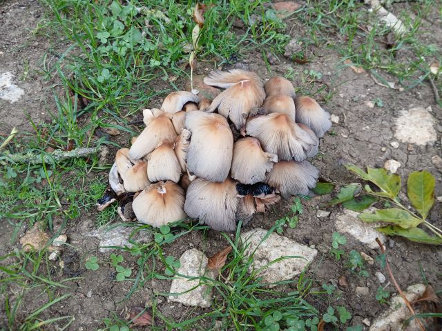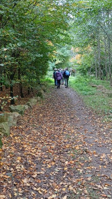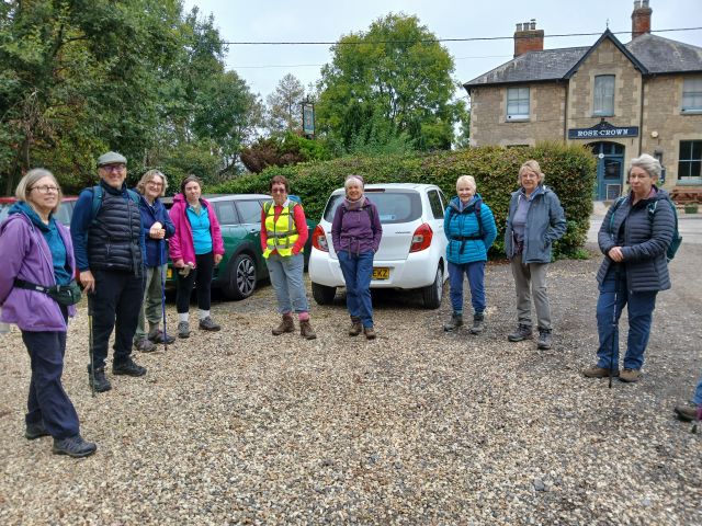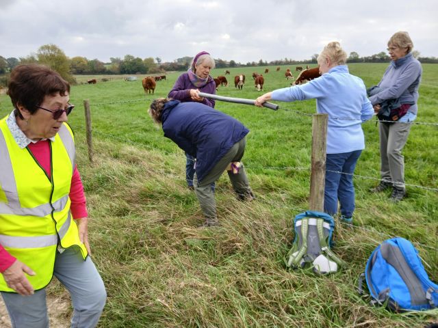 Lea - Saturday 11 October 2025 Previous Next All We are in Wiltshire today, led by Janet with some locals and a few of the usual suspects Mica cap fungi (we think) An electric fence blocked our path, so we improvised with foam pipe cover and foam plus ribbons to tackle the wire one Passing the Manor house and paddocks at Garsdon Autumn colours on the path back to the pub at Lea Photos and captions and uploaded by Olivia