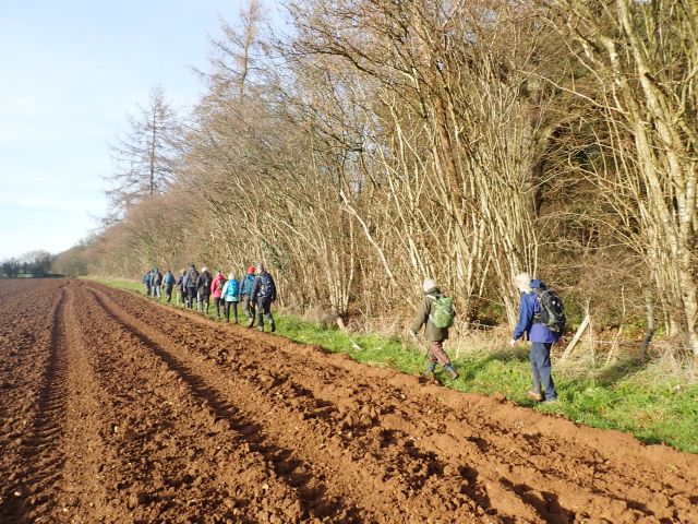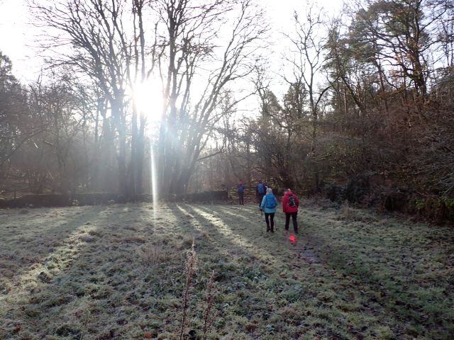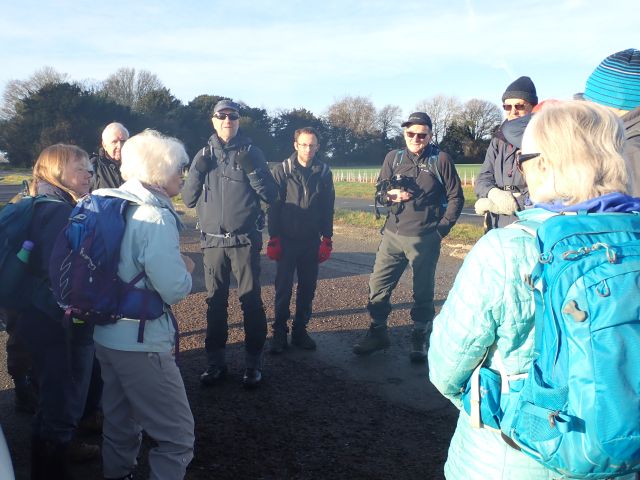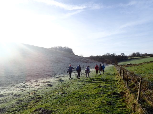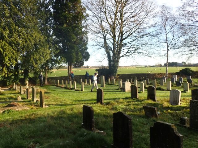 Leighterton - Saturday 13 December 2025 Previous Next All The sun is bright and the sky is blue For Tina’s walk from the layby near Leighterton We stop at the Commonwealth War Graves in the village where 24 Australian pilots, who died while training for war, are buried. Agricultural machinery blocking a gateway Father Christmas on horseback We turn off the road Into a frosty valley Blinded by the light After a coffee stop on the path in Westonbirt Arboretum we continue Across fields back to the layby Photos by Keith, captions by Sally and uploaded by Olivia