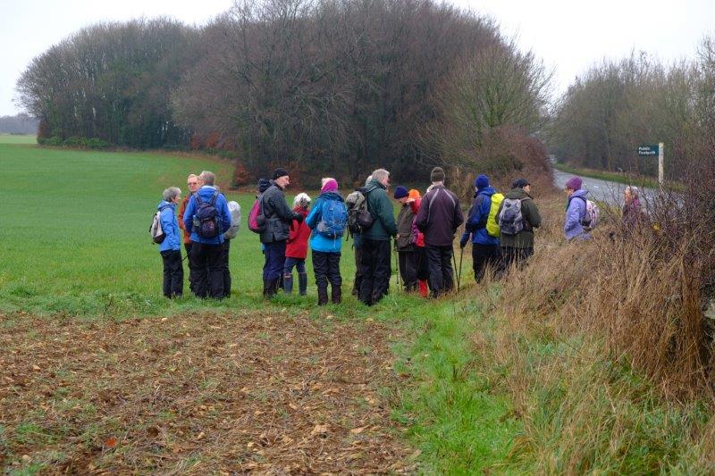 Leighterton walk - Wednesday 5 December 2018 Previous Next Ray is there somewhere. Ready to go Our path takes us out of Leighterton and over fields Leaving the village behind Not the easiest of stiles A46 safely crossed Off again over fields Another tricky stile And into Tresham Where we look down over the Millennium Garden And stop for coffee Ray cuts a lonely figure as nobody wants to follow a leader with an umbrella like that OzleworthTower can be seen across the valley Down through some woods Signs of the local shoot As we head out into the open and up the valley Past Boxwell Court A large house A long barrow across the field Then back into Leighterton Arriving at the Royal Oak Photos and captions by Richard, uploaded by Mike